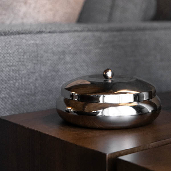Åpningsbare metallbokser i skinnende sølv, 2-pakning. Disse allsidige boksene er perfekte for oppbevaring av smykker, småting eller andre verdisaker på en stilig måte. Laget av høykvalitetsmetall med en skinnende sølvfinish, er de både slitesterke og estetisk tiltalende. Det tidløse designet passer godt inn i både moderne og klassisk interiør. Bruk dem sammen eller separat for å organisere og dekorere med stil.