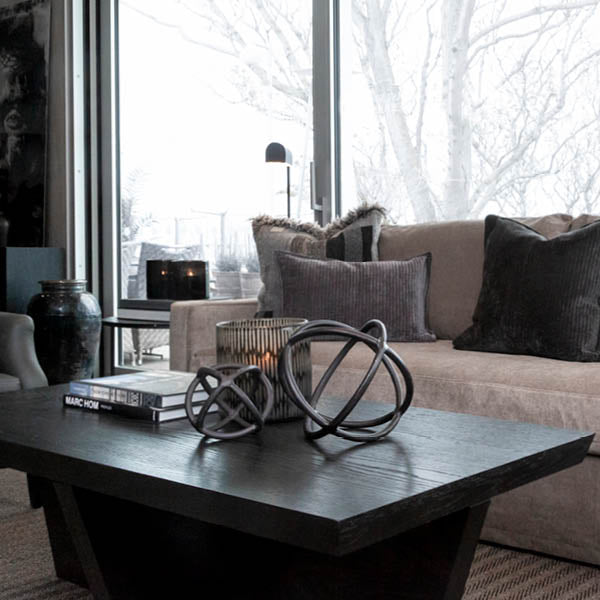 Svart metallskulptur med runde sirkler. Det glatte designet skaper en moderne og elegant følelse, noe som gjør denne skulpturen til en perfekt dekorativ detalj for både moderne og klassiske omgivelser. Plasser den på et bord, en hylle eller et skjenk for å gi et snev av raffinement og kunstnerisk eleganse til hjemmet ditt.
