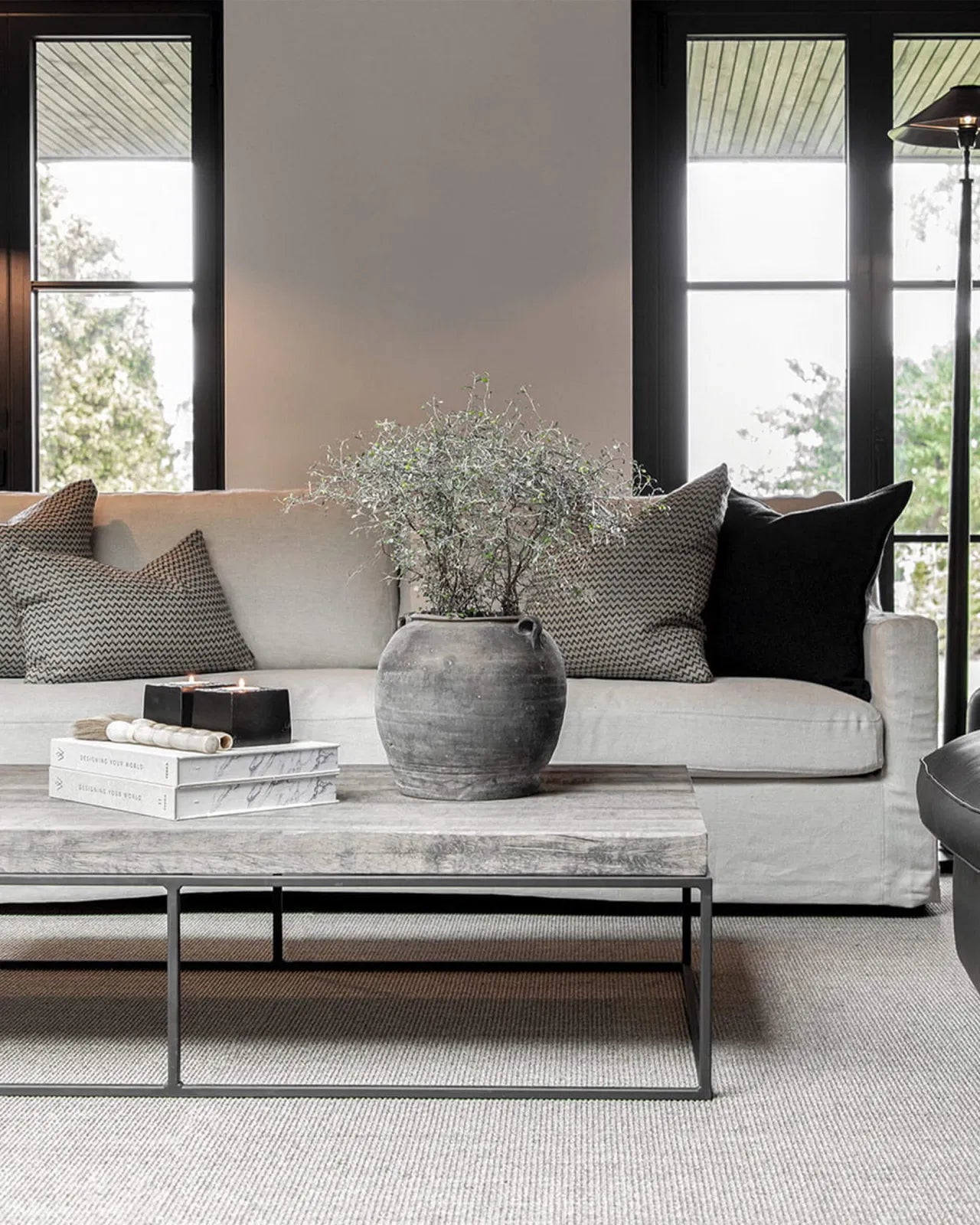 Carlisle-sofabordet kombinerer tidløs eleganse med et moderne preg. Den 6 cm tykke bordplaten i heltre eik gir en naturlig og solid følelse, mens den elegante, svarte metallrammen skaper en stilig kontrast.
