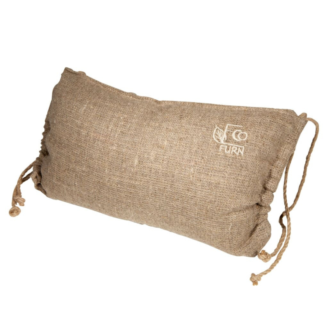 EcoFurn® nakkepute er spesielt utviklet for EcoChair, og gjør opplevelsen komplett med støtte og komfort til nakke og hode. Trekket er i 100 % lin, mens fyllet består av hurtigtørkende polyestermikrofyll laget av resirkulerte plastflasker hentet fra havet. Puten festes enkelt til stolen med solid hampetau.