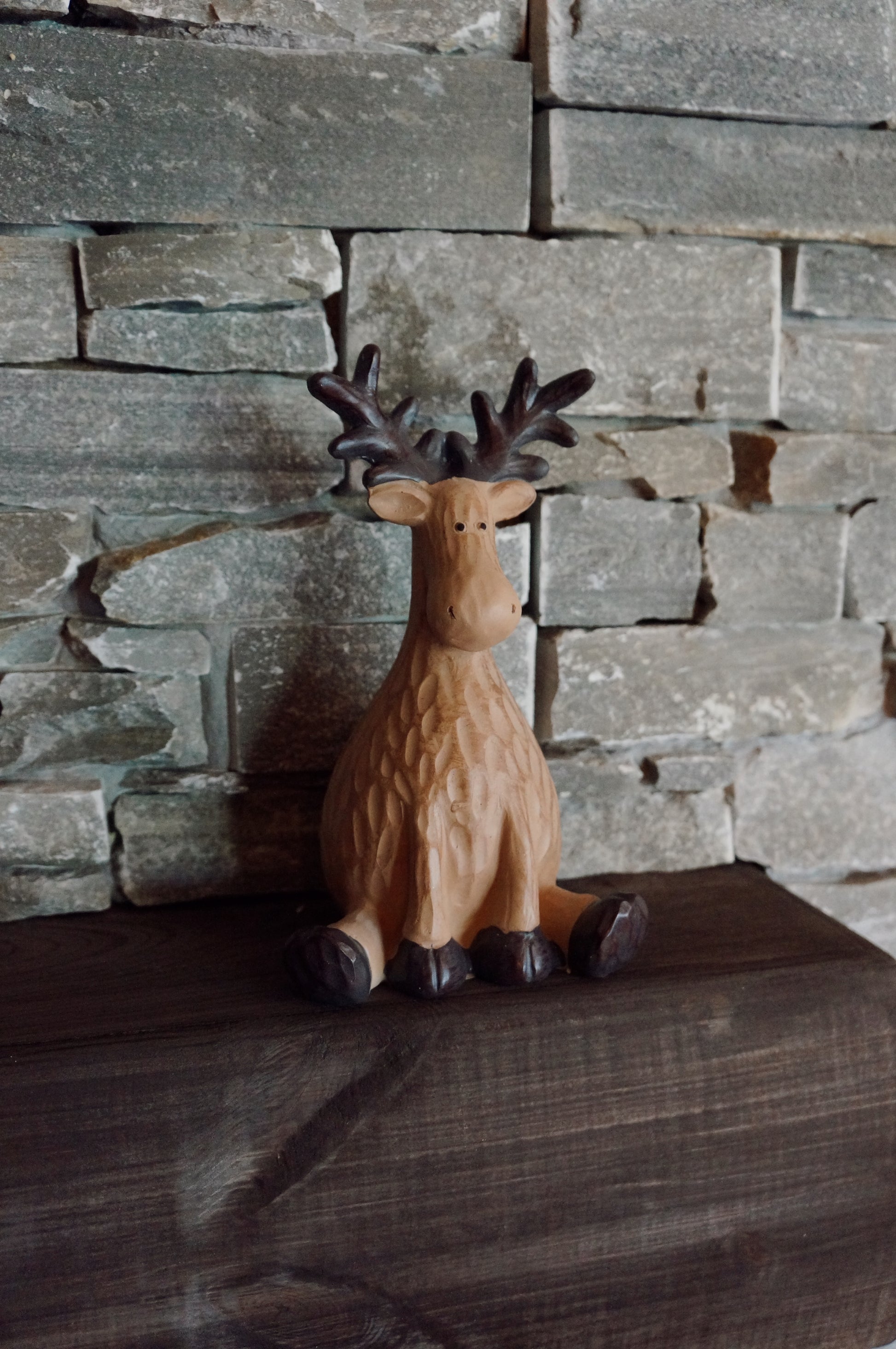 Denne dekorative elgfiguren gir hjemmet et sjarmerende og lekent preg. Med sitt naturlige tre-look og varme uttrykk passer den like godt som stemningsfull sesongpynt som en koselig interiørdetalj året rundt. Den myke, humoristiske utformingen gjør figuren til et blikkfang som skaper både hygge og smil, enten den plasseres i stuen, gangen eller på hytta.