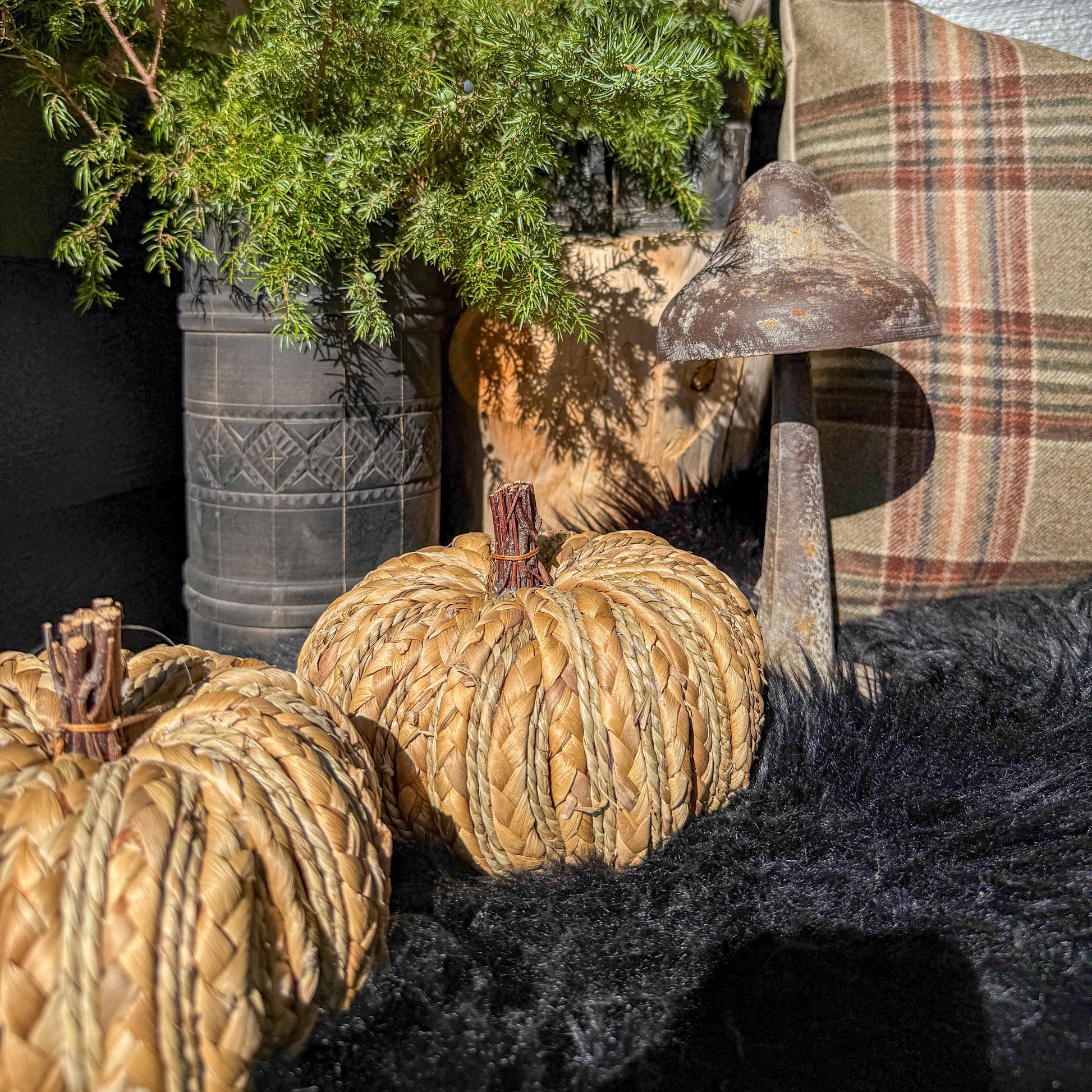 Gi hjemmet ditt en koselig og naturlig høststemning med disse små, flettede gresskarene. Perfekte for borddekorasjoner, vinduskarmer eller som en gave.