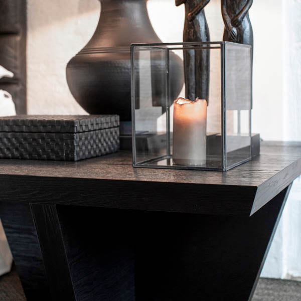 Oppbevaringsboks med treramme trukket med vevd skinn, noe som skaper en stilig og funksjonell løsning for dine oppbevaringsbehov. Boksens tidløse design og svarte farge gjør den til et perfekt tillegg til både moderne og klassisk interiør. Ideell for å organisere småting eller som en dekorativ detalj på et bord, en hylle eller i skapet ditt.