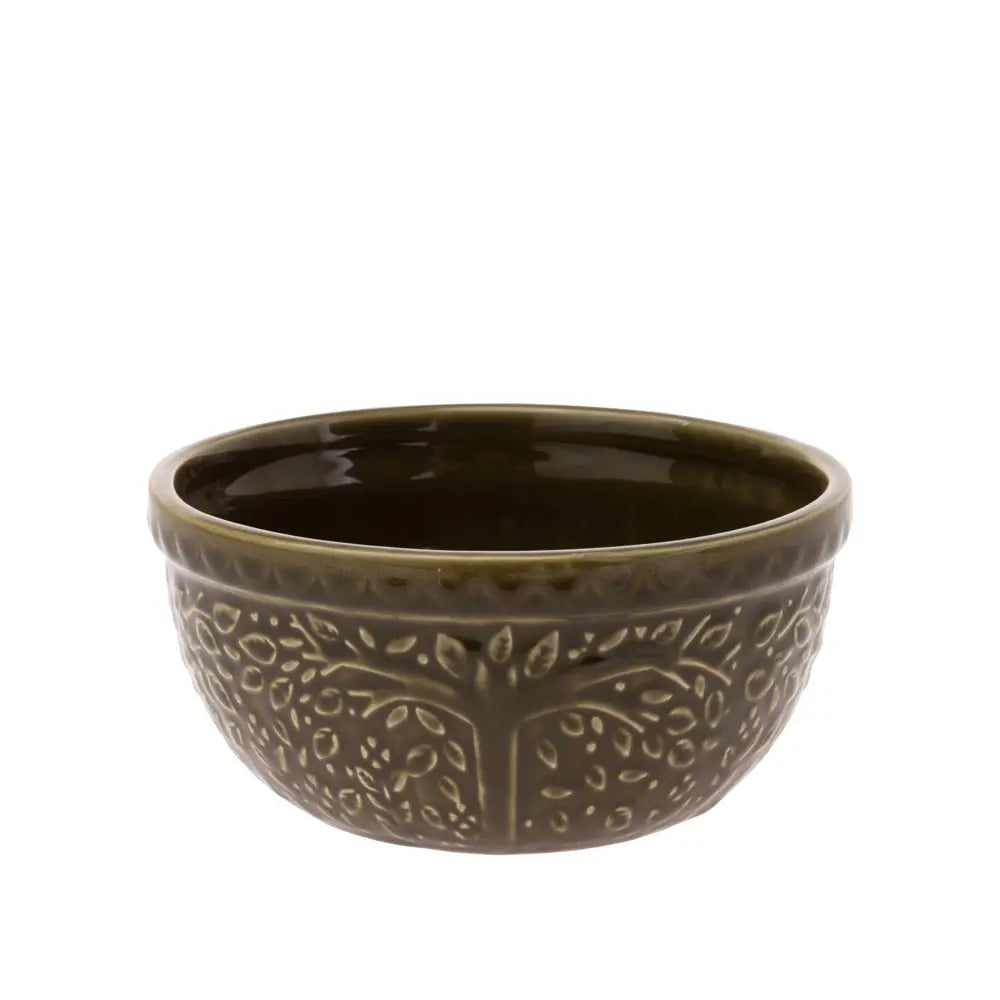 Denne olivengrønne skålen med dekorativt mønster av høstblader er akkurat det man trenger for høstens snacks.