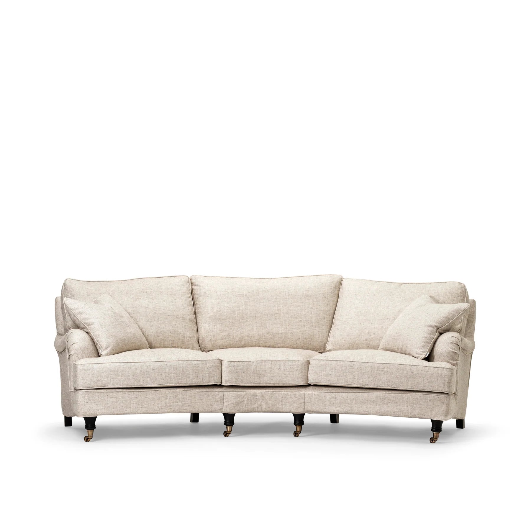 Howard Medium er en elegant variant av Howard-serien, designet med en mindre setedybde, men med den samme tidløse estetikken. Den har lave, buede armlener, ben med hjul og en høy og lett vinklet rygg for ekstra komfort. Vår buede modell er perfekt for større rom der sofaen kan stå frittstående, noe som gjør den til et attraktivt innslag i interiøret. Howard-serien tilbyr et bredt utvalg av møbler og er også tilgjengelig i en full størrelse-versjon og som Howard Slim.