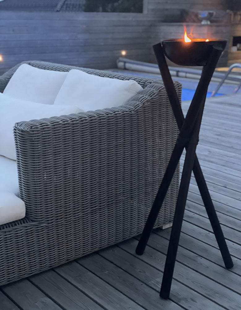 Papsen er en fantastisk fakkelholder som du kan bruke hele året, og som gir maksimal atmosfære! Den har 3 vedkubber hver på 4 cm i diameter og en fakkelholder som er 25 cm i diameter. Vi anbefaler å fylle pappen din med sand slik at «alle» fakkelbokser kan brukes.