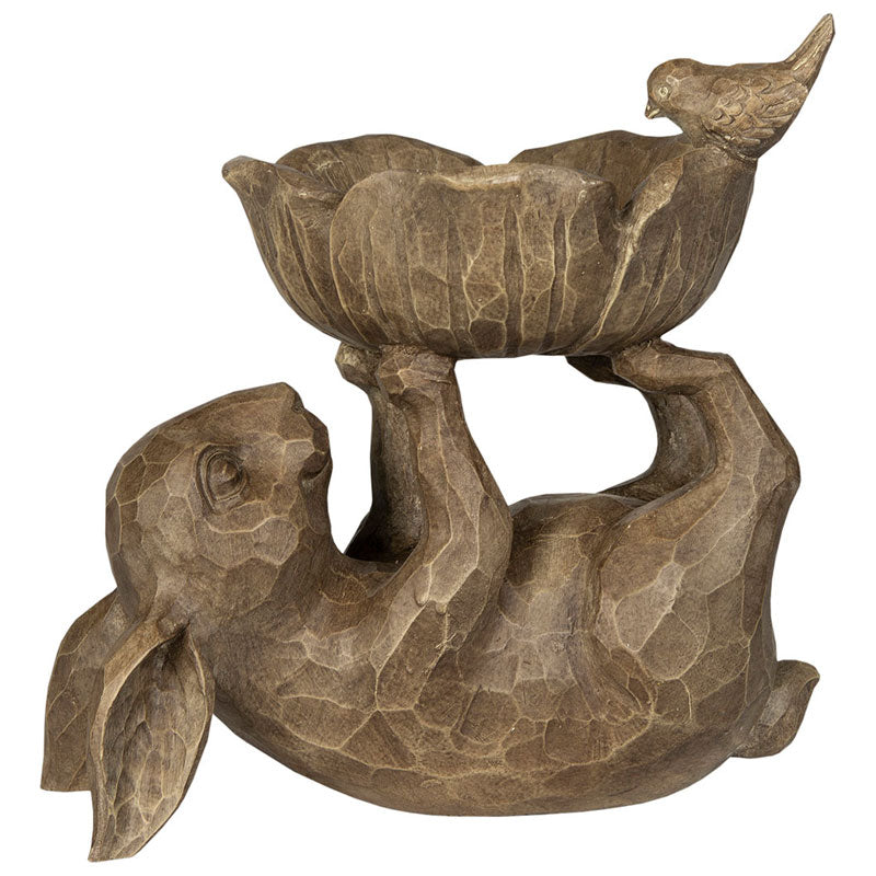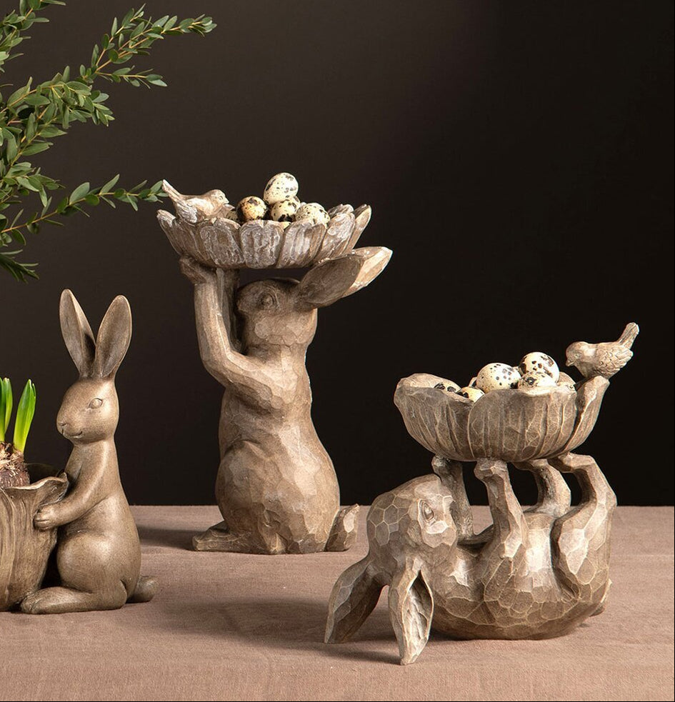 Denne kaninen som holder en dekorativ bolle er en fin gjenstand å plassere på et salongbord eller i vinduskarmen. Laget av polyetylen.