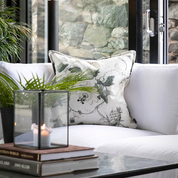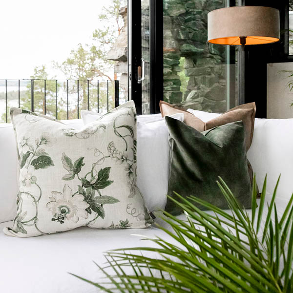 Et lett og elegant putetrekk med et botanisk mønster i myke grønntoner, som skaper en frisk og innbydende følelse. Det detaljerte blomstertrykket gir et klassisk og harmonisk utseende, ideelt for både terrassen og stuen.