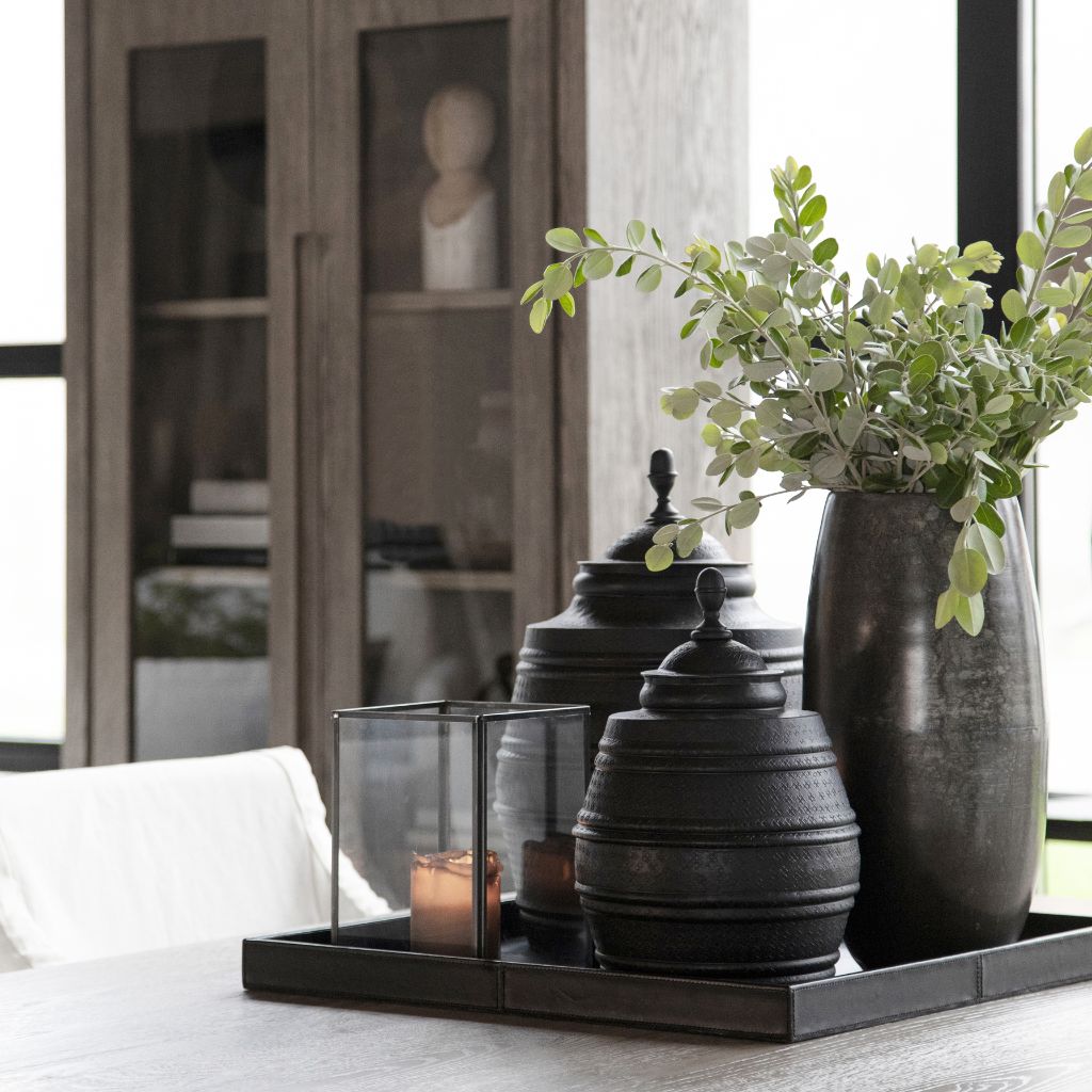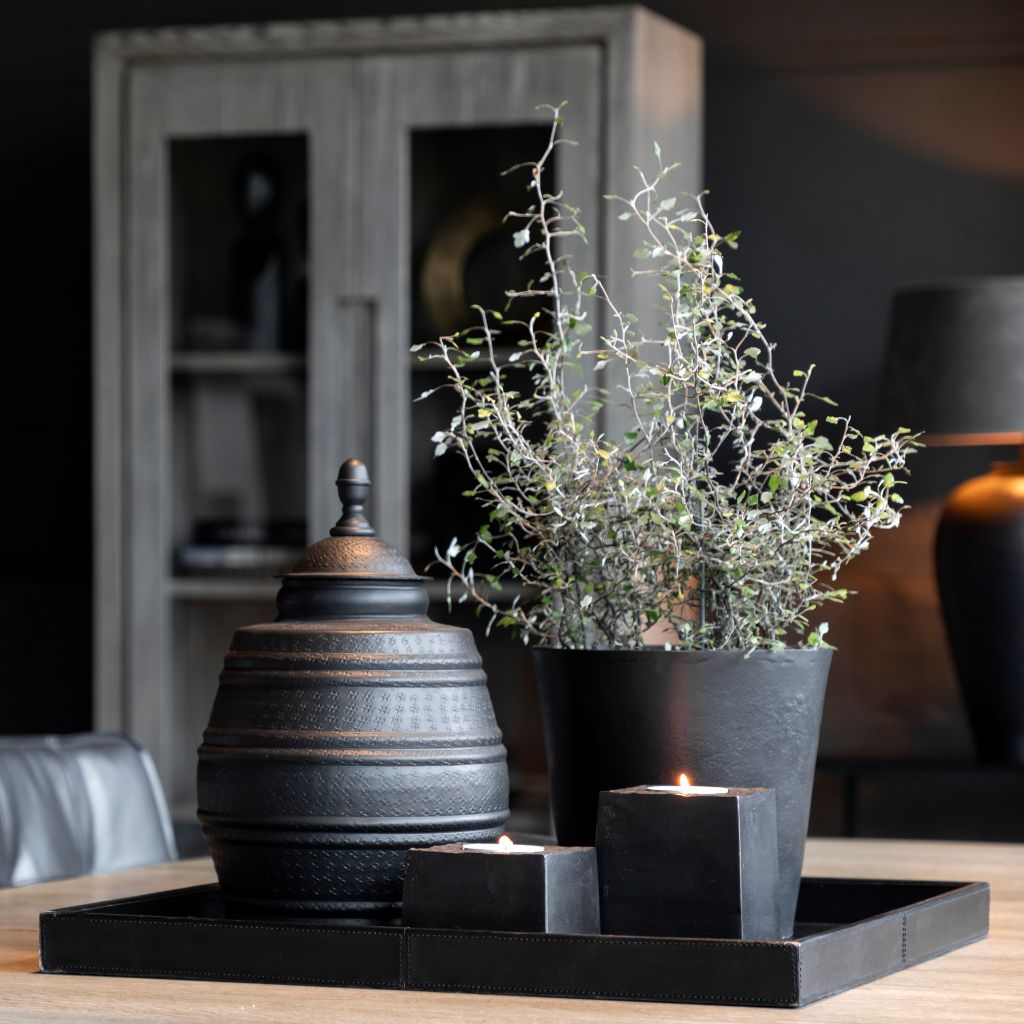 Et firkantet brett trukket i skinn med dekorative sømmer. Perfekt for servering eller som et dekorativt element. Brettets robuste konstruksjon og tidløse design gjør det til et ideelt valg for både moderne og klassiske hjem.