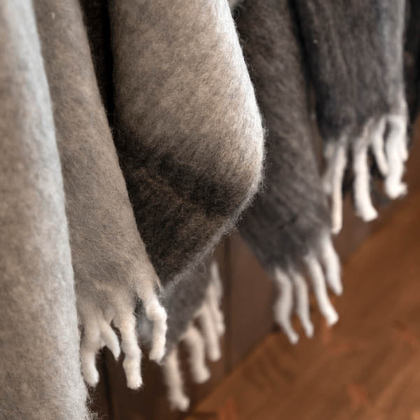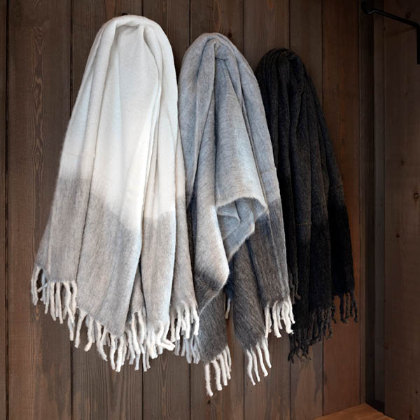 Et klassisk pledd i en myk, vevd ullblanding. Pleddet har en børstet overflate og tvinnede, luftige dusker langs kortsidene. Det er tilgjengelig i flere forskjellige farger.