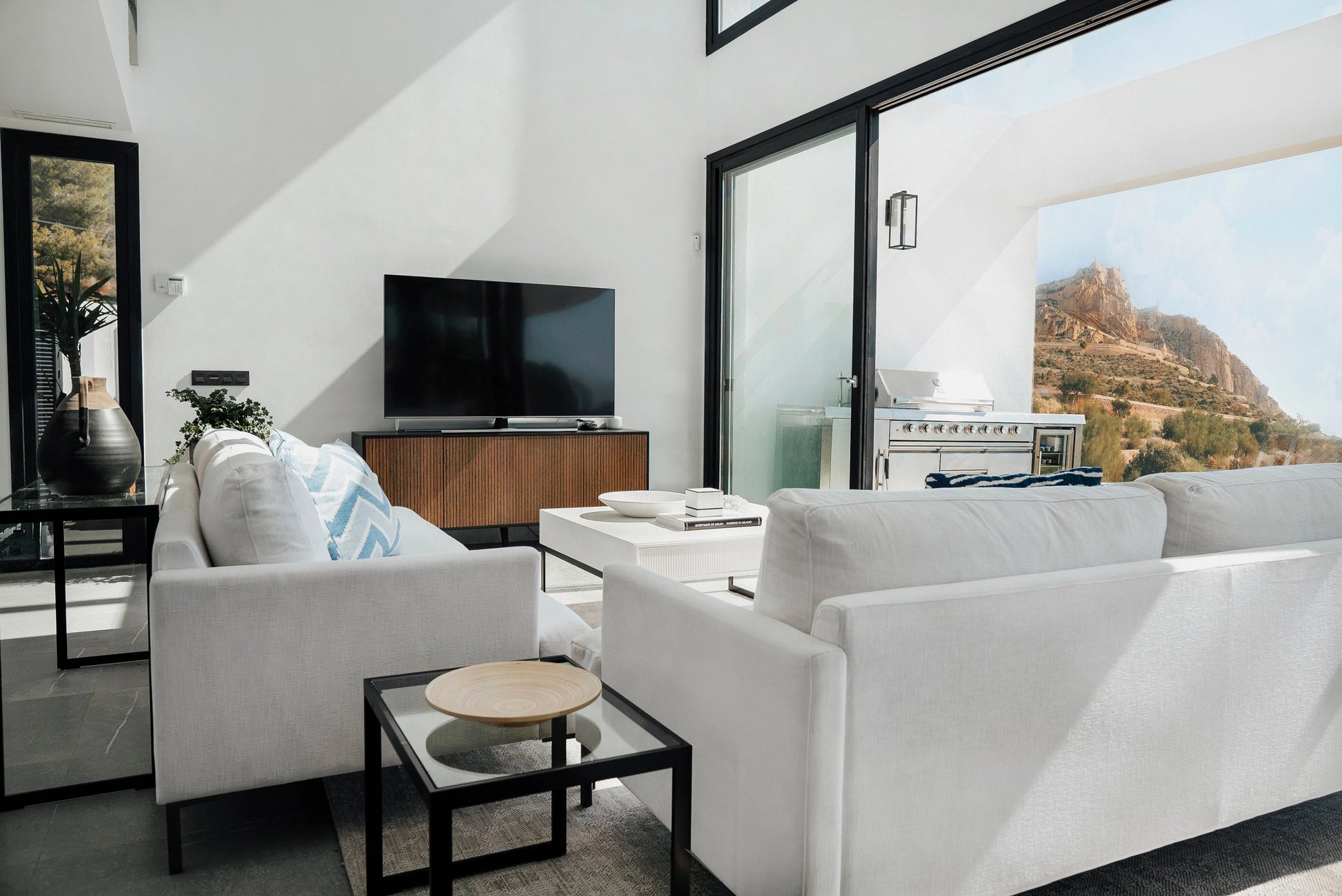 Sidebordet i Square-serien er perfekt for å få mer oppbevaringsplass i stuen. Hvis du ønsker å få mer lys inn i stuen, er det også et bra sted å plassere en bordlampe. Velg mellom en metallramme i svart eller sølvgrå pulverlakk og en topp i glass, svart eik eller brent valnøtt.