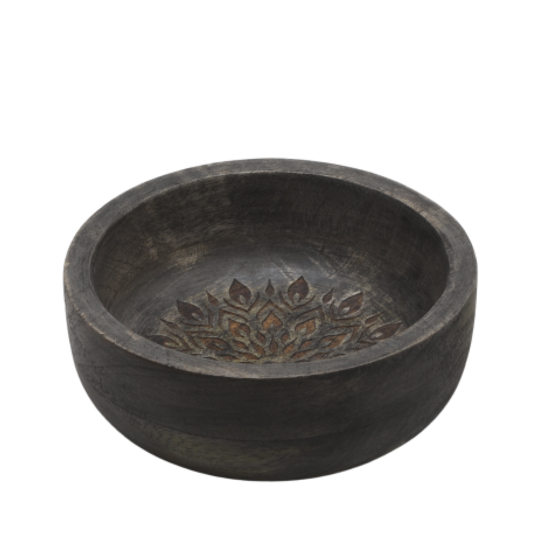 Tilfør et snev av rustikk eleganse til hjemmet ditt med denne Tours-skålen. Skålen er laget av heltre mango med en mørkbeiset overflate som fremhever det utskårne mønsteret på bunnen på en vakker måte. Den er matsikker, og den romslige, runde formen gjør den ideell for alt fra servering av snacks og frukt til å fungere som en dekorativ base for blokklys eller små dekorative gjenstander.