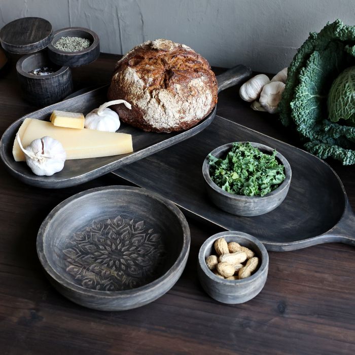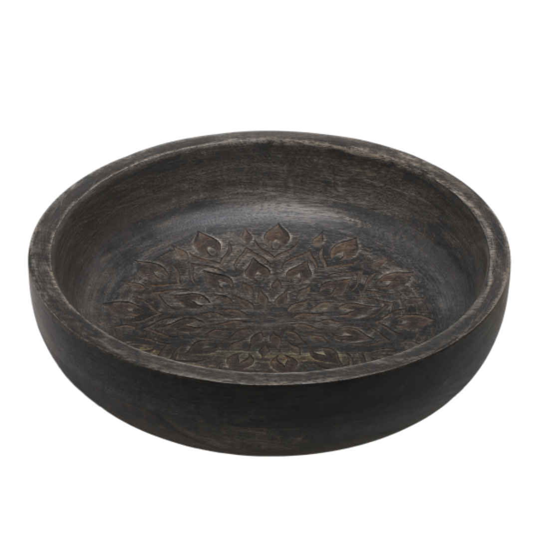 Tilfør et snev av rustikk eleganse til hjemmet ditt med denne Tours-skålen. Skålen er laget av heltre mango med en mørkbeiset overflate som fremhever det utskårne mønsteret på bunnen på en vakker måte. Den er matsikker, og den romslige, runde formen gjør den ideell for alt fra servering av snacks og frukt til å fungere som en dekorativ base for blokklys eller små dekorative gjenstander.