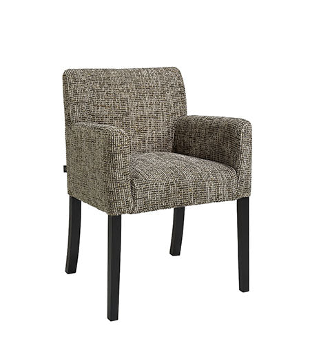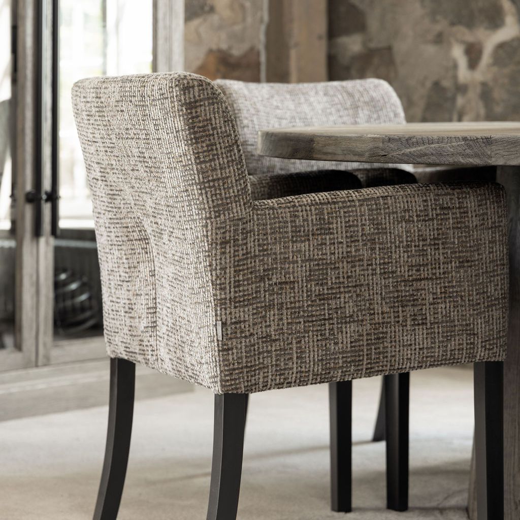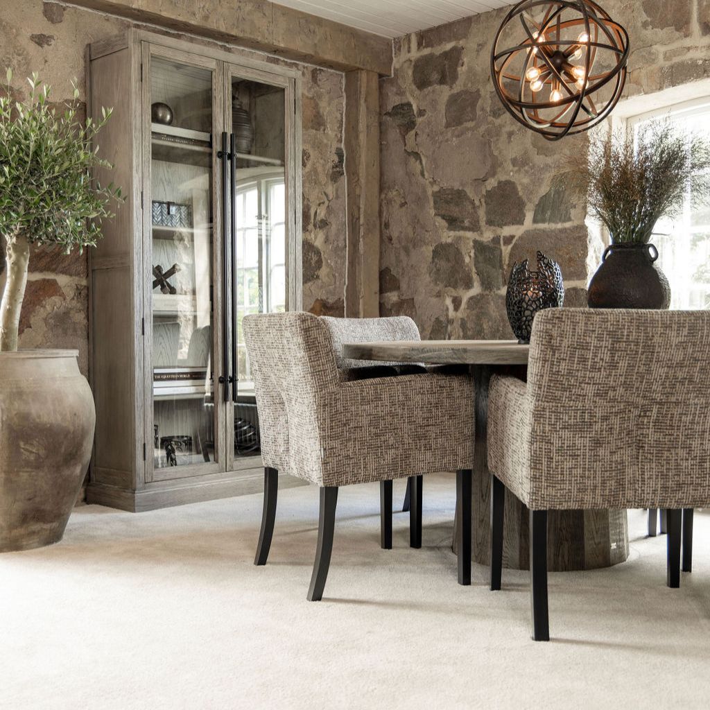 Det ergonomisk utformede setet og den komfortable ryggstøtten gir eksepsjonell komfort, noe som gjør den ideell for lange middager eller hyggelige sammenkomster med familie og venner. De elegante armlenene gir ekstra støtte, noe som forbedrer den avslappede og behagelige sitteopplevelsen.