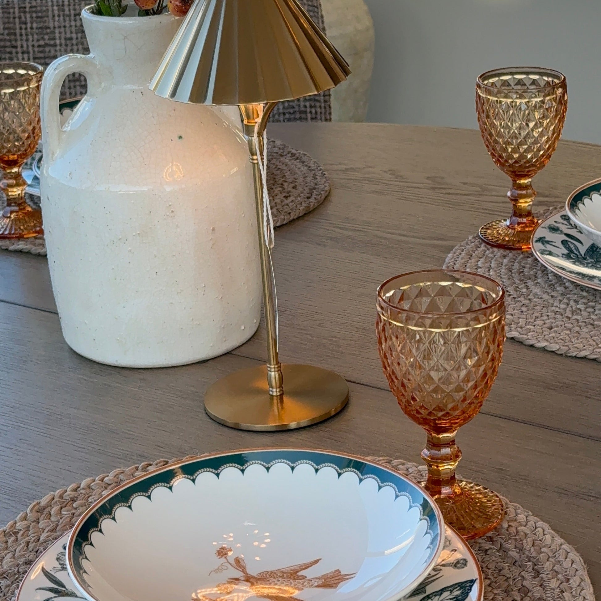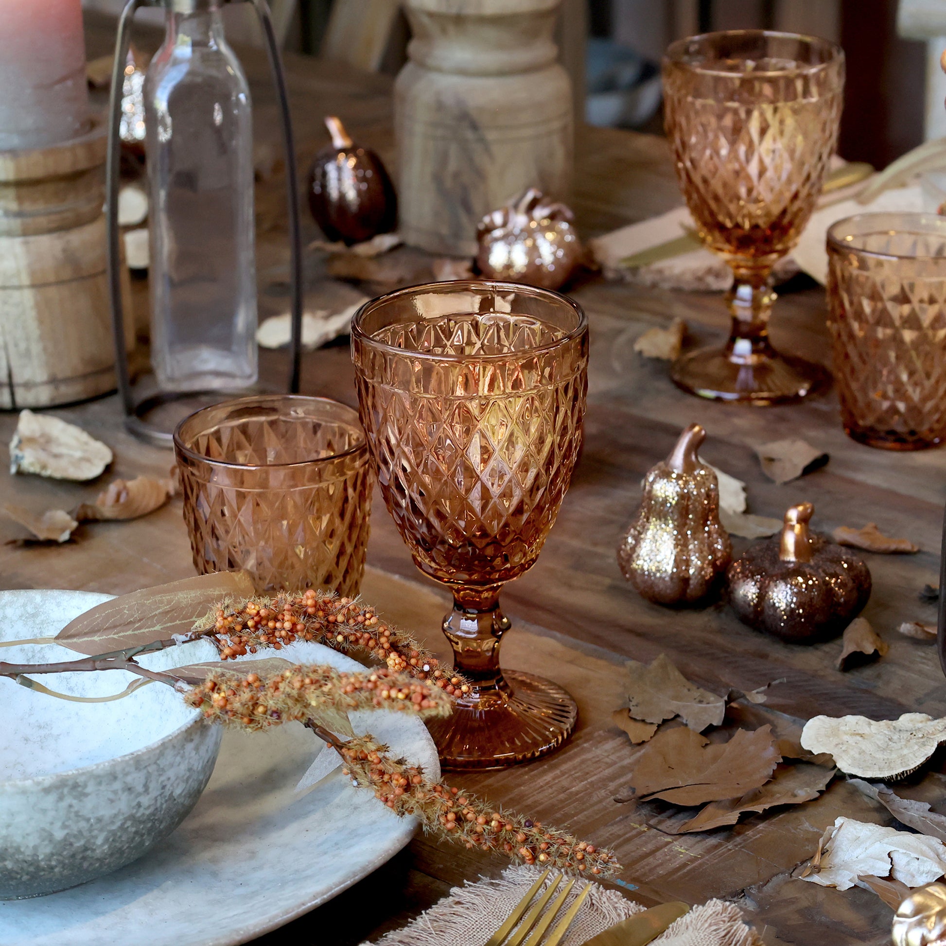 Dette elegante vinglasset i varm honningfarge setter den perfekte stemningen til høstens borddekking. Den gyldne gløden fremhever både vinens farger og sesongens lune atmosfære, samtidig som glasset gir et eksklusivt og innbydende uttrykk. Ideelt til høstmiddager, selskap eller når du vil tilføre bordet et snev av stil og varme.